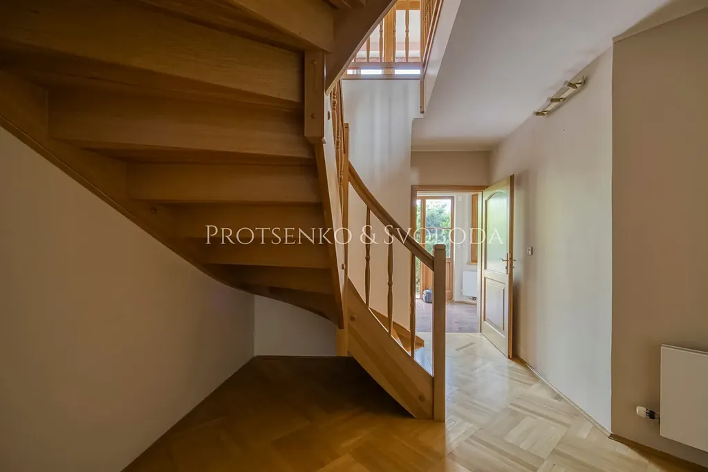 • masivní dřevěné schodiště, kvalitní podlahy, dřevěná okna
