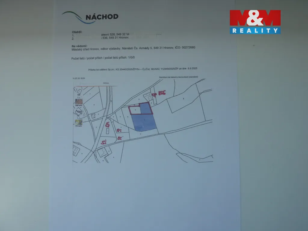 Zahrada 5.800m2 v čisté přírodě. Příležitost pro osazení ubytovacích modulů. Spolupráce s firmou GOTThouse Vestec u Prahy. Cena bez modulu. Nebo vybudování zázemí pro ovocnářskou a zemědělskou činnost, agroturistiku. Návrat investic v rozmezí 15 ti let. Zahrada o dostatečné ploše s vlastním přístupem z obecní komunikace. Oplocený pozemek dosud v územním plánu jako zahrada, vzdálená od ruchu civilizace, přesto lehce dostupná k občanské vybavenosti. Zahrada na náhorní rovině nad řekou Metuje, chráněná od severních větrů lesním porostem s výhledem na stolovou horu Bor. Inženýrské sítě, voda a el. proud na hranici. O vlastní studnu požádáno Zahrada vysoko na čerstvém vzduchu vzdálená od emisí topení a automobilového provozu. Přesto do města jen 2 km po asfaltové silnici a jen 10 minut lesem pěšky po zpevněné cestě. Ideální dostupnost do obcí Velké Poříčí, Hronov a Náchod. Do krajského město Hradec Králové 35 min. Stanovisko k Územnímu plánu ve foto. Plán před změnou.