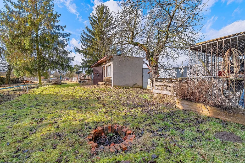 Zděná chata o zastavěné ploše 25 m2 s velkým rovinatým pozemkem (zahradou).