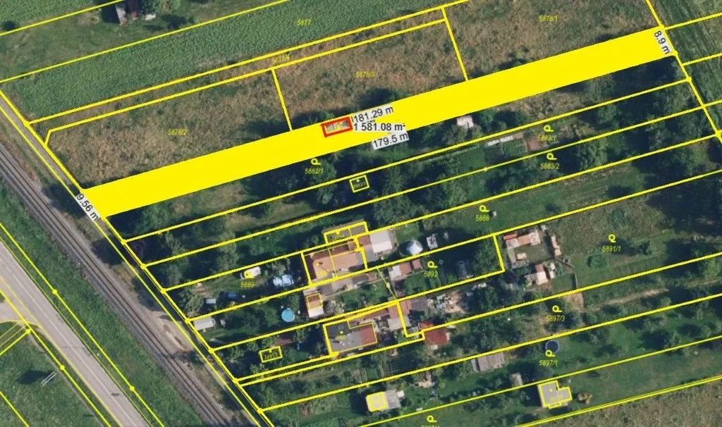 Napojeno na elektřinu 220/380V (zavedená do chaty), voda z vlastní studny (hloubka hladiny cca 5m). ozemek má tvar kosodélníku s délkami jednotlivých stran: 181,3 m (délka severní) x 8,9 m (šířka východní) x 179,5 m (délka jižní) x 9,56 m (šířka západní). Hranice pozemku na jižní délce není oplocená, zbývající tři strany jsou celé oplocené. Vstup a vjezd na pozemek zajištěný manuální bránou ze západní strany od cyklostezky tj. obecní asfaltové komunikaci.