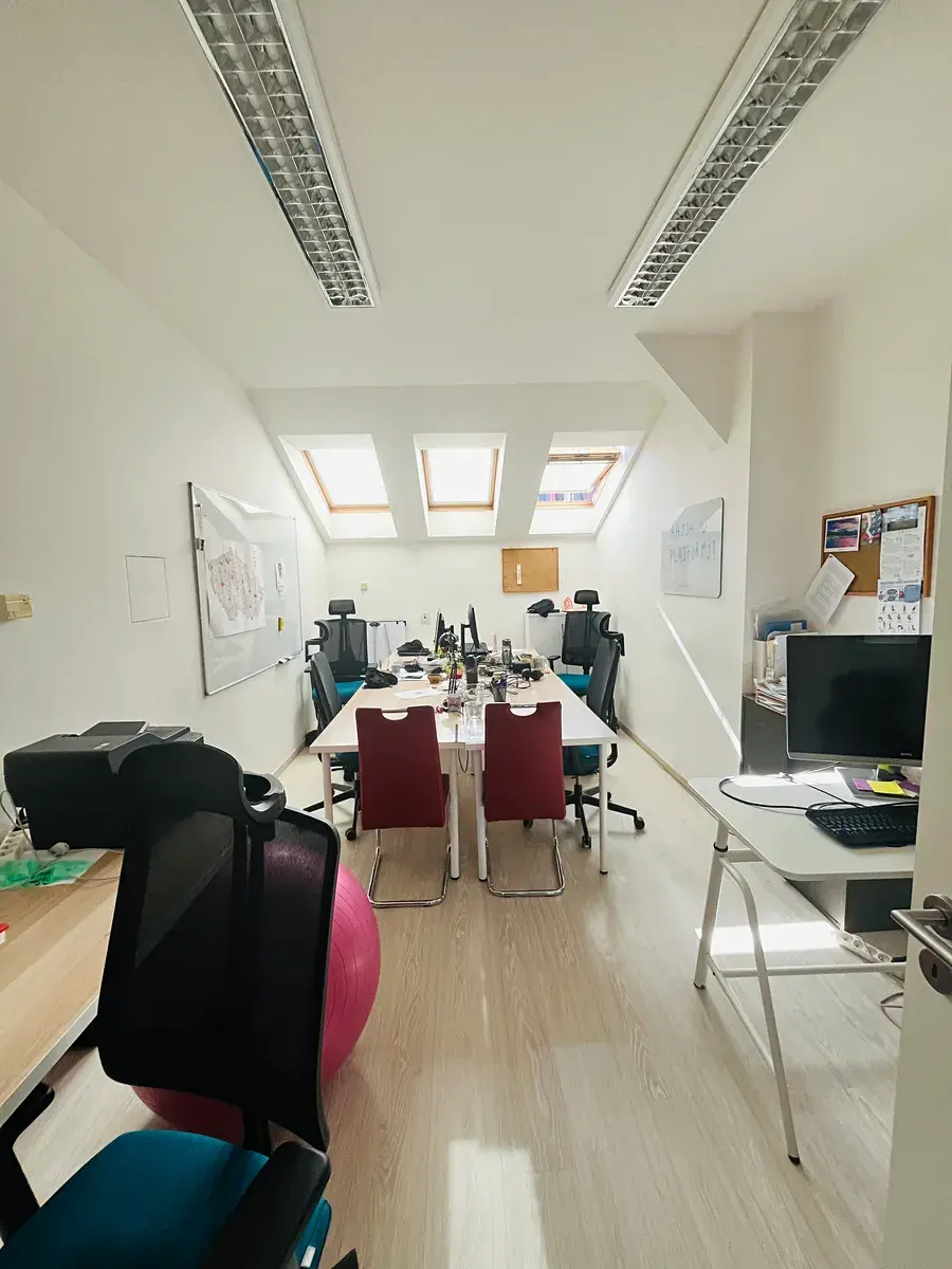 Dispozičně se jedná o 4 podkrovní kanceláře o velikosti cca 85m2, 4 . patro s výtahem, cihlovém domě, který je reprezentativní. Prostory po úpravách, všechny místnosnosti klimatizované a vybavené střešními okny. Nové nátěry, pl. podlaha.