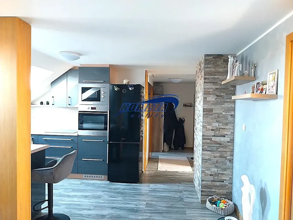 Nabízíme k prodeji světlý a útulný podkrovní byt o dispozici 3+kk a celkové ploše 69m2 + sklep 16m2.