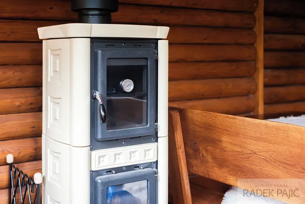 - Kachlová kamna 2x, v pergole s pecí + elektrokotel + podlahové topení, příprava na solární panely pro ohřev TUV