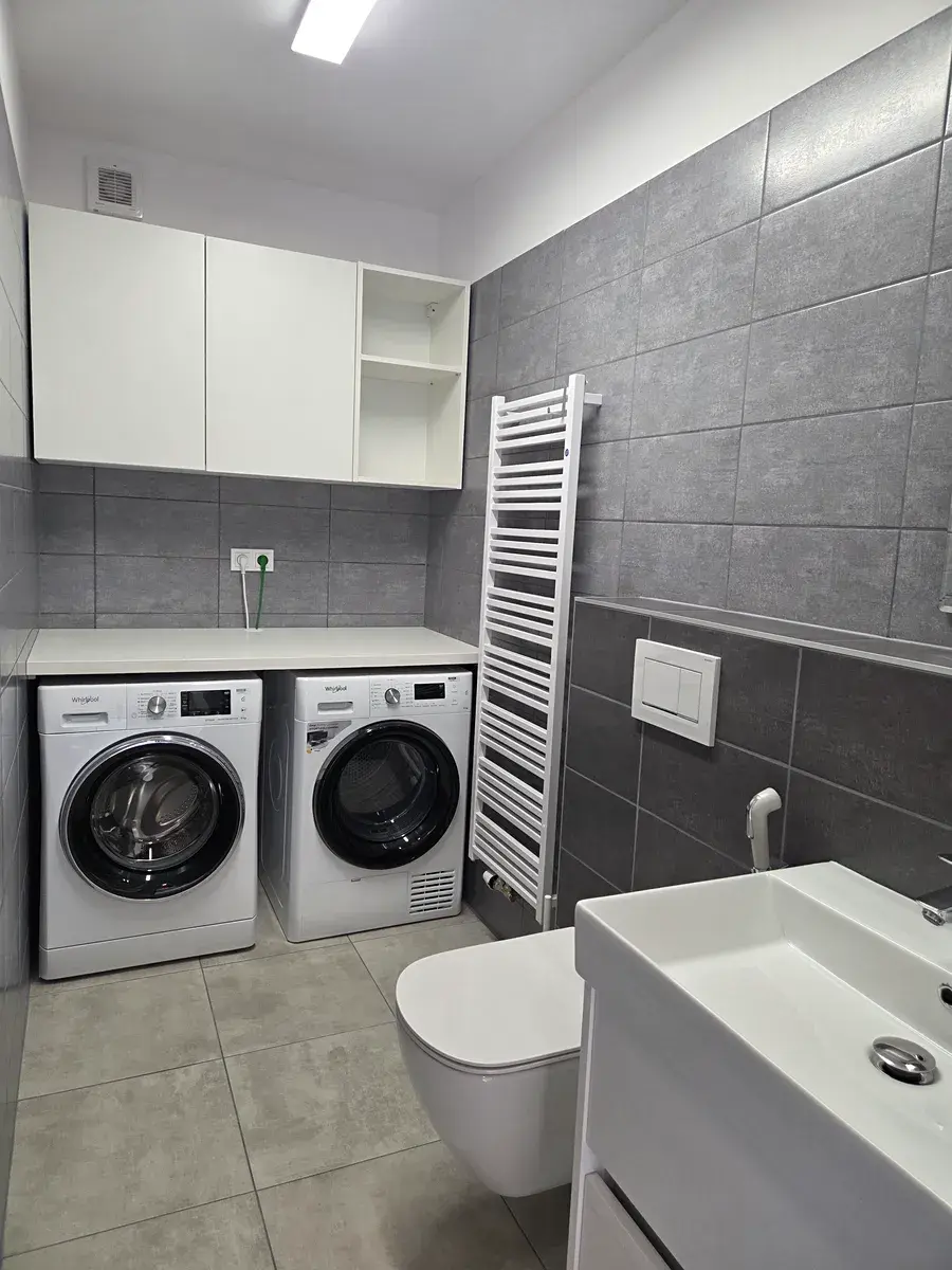 V 1NP se nachází dva pokoje se společným balkónem. Ložnice je vybavena manželskou postelí a šatní stěnou s vestavěnou televizí. Luxusní koupelna - sprchovací kout, WC a umyvadlo – ideální pro pohodlné užívání.