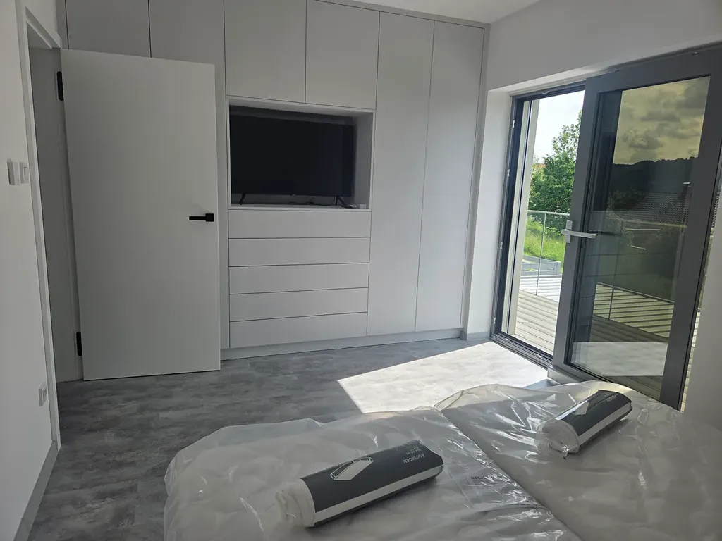 Moderní bydlení: Otevřený obývací pokoj s kuchyňským koutem vybaveným vestavěnými spotřebiči (sklokeramická deska, trouba, mikrovlnka, digestoř), prostorná venkovní terasa, v 1NP balkón přístupný z obou pokojů s výhledem na západ a v neposlední řadě také dvě parkovací stání.