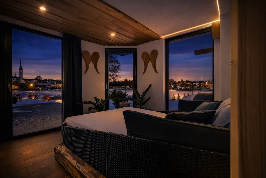 Lipno nabízí celoroční využití — léto u vody, cyklostezky a Šumavu, podzimní přírodu, zimní lyžování i bruslení na zamrzlém jezeře. Navíc jen krátká vzdálenost do rakouských Alp (Hochficht, Sternstein) nebo města Linz.