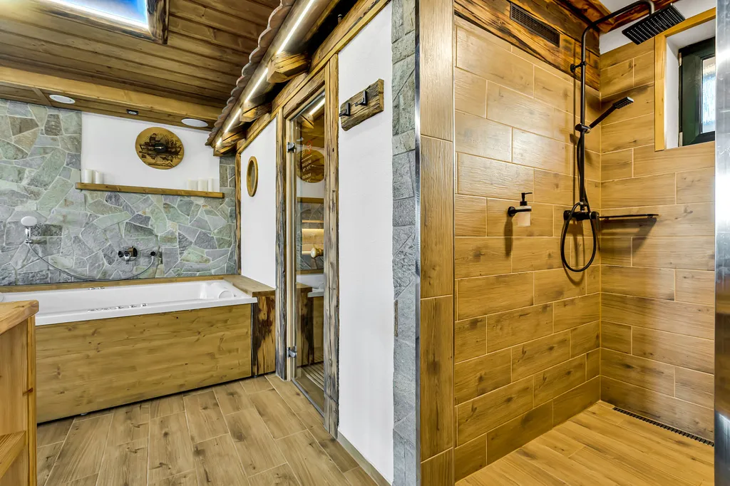 Ráno káva na terase, přes den voda nebo hory, večer krb a vířivka.
