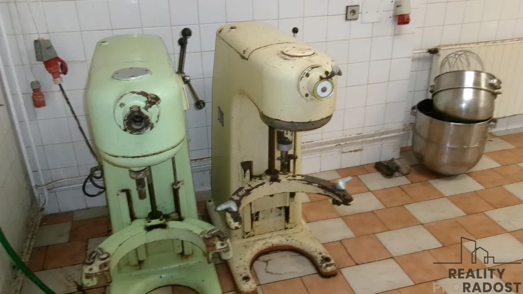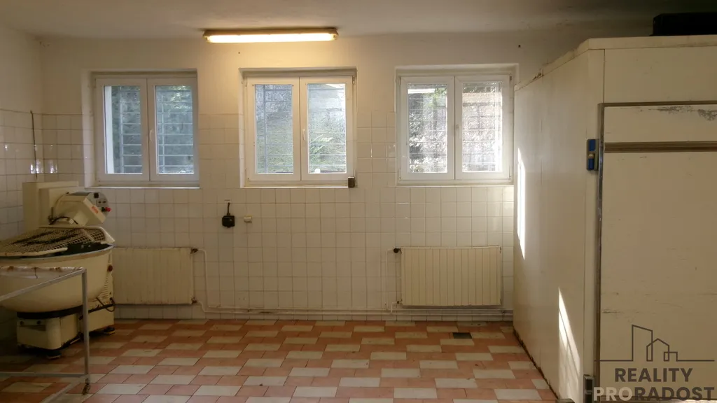 V zastoupení majitele Vám nabízíme k pronájmu zajímavé prostory bývalé pekárny ve Střelicích u Brna. Prostor je zkolaudovaný na potravinářskou výrobu a i když je několik let uzavřený, jsou zde stále nastěhované stroje, které byly funkční až do konce výroby: Pec s otočným košem, dvoudveřová kynárna, hnětač, dávkovač vody, hydraulická dělička, malá dělička: vše francouzské stroje zn. Bertrand machines groupe Dito, dále jsou zde rohlíkovač, prosívačka, šlehače: české značky. Každý stroj má vlastní zásuvku 380V na vlastní el. okruh. Vše v mědi. Pracovní stoly a ponky. Nerezový dvojitý dřez, bojler, vytápění plynovým kotlem. Současný příkon 3x50 A s možností navýšení. Dispozice: předsíň, šatna zaměstnanců s toaletou a sprchovým koutem, malý sklad, větší sklad – přípravna, kancelář, výrobní prostor. Prostor je vhodný pro potravinářskou výrobu, či nějakou dílnu, např. stolařství či zámečnictví. Možnost najetí dodávkou až k dílně. Volné k pronájmu ihned.
