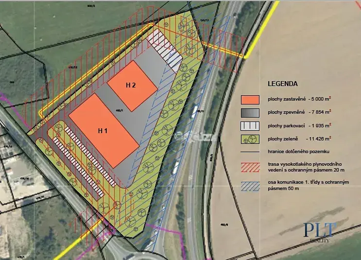Výměra: Dostačující prostor pro výstavbu dvou výrobních nebo skladovacích hal.