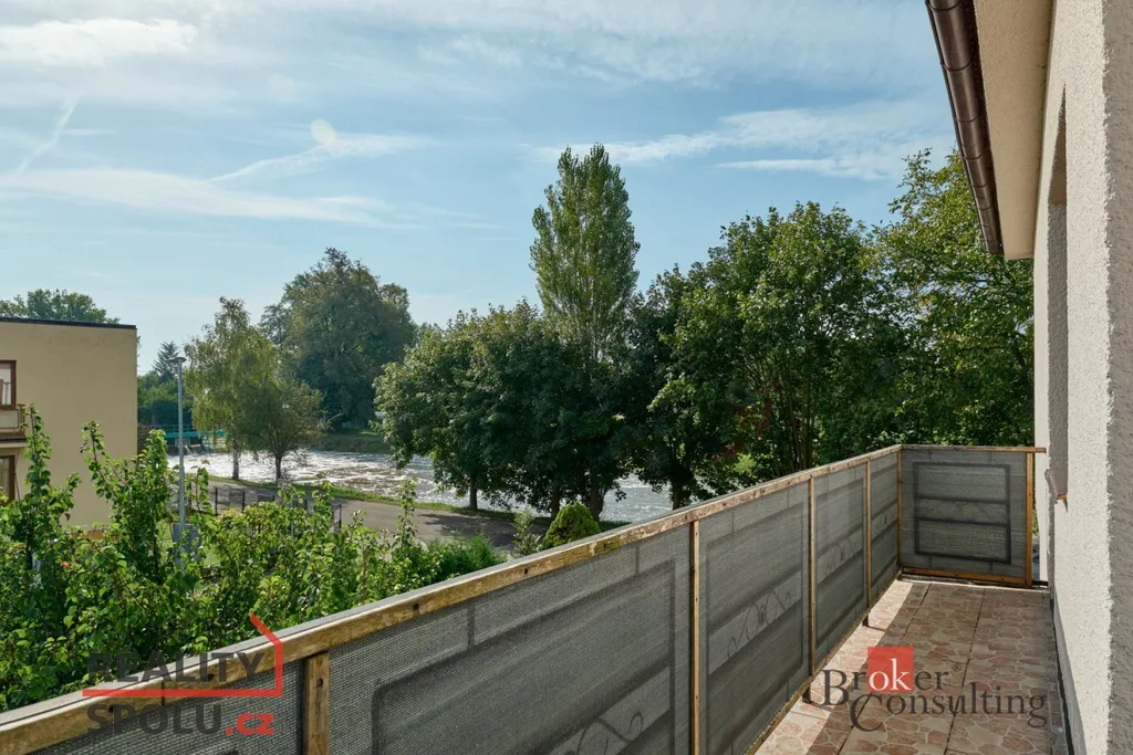 Byt je ve skvělém stavu se 2 balkony (Jeden balkon 6 m² s výhledem na řeku, druhý balkon 4 m²) . U domu se dá pohodlně parkovat i využívat část zahrady.