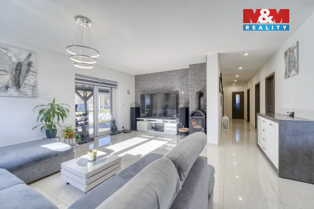 Nabízíme moderní bungalov 3+kk u lesa s velkou zahradou v Rotavě. Hledáte klid, soukromí a přírodu na dosah? Tato světlá zděná novostavba o ploše 127,8 m² stojí na pozemku 1 498 m² na okraji obce a díky ideální orientaci je prosluněná po celý den. Dispozice zahrnuje prostorný obývací pokoj s kuchyní a krbovými kamny, ložnici, dětský pokoj, koupelnu s vanou i sprchou, technickou místnost a velkou vstupní chodbu. Dům je vybaven tepelným čerpadlem a podlahovým vytápěním.