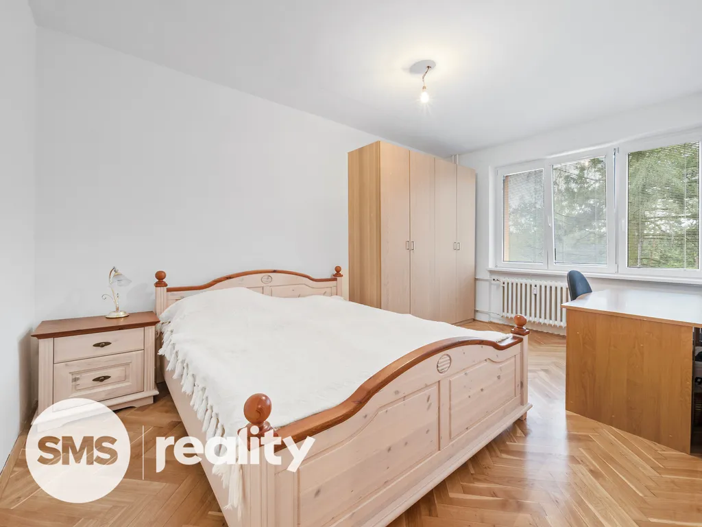 Byt se nachází v 1. nadzemním podlaží a součástí vybavení je kuchyňská linka s vestavěnými spotřebiči, jídelní stůl se čtyřmi židlemi, velká šatní skříň v ložnici, psací stůl a další drobné vybavení.