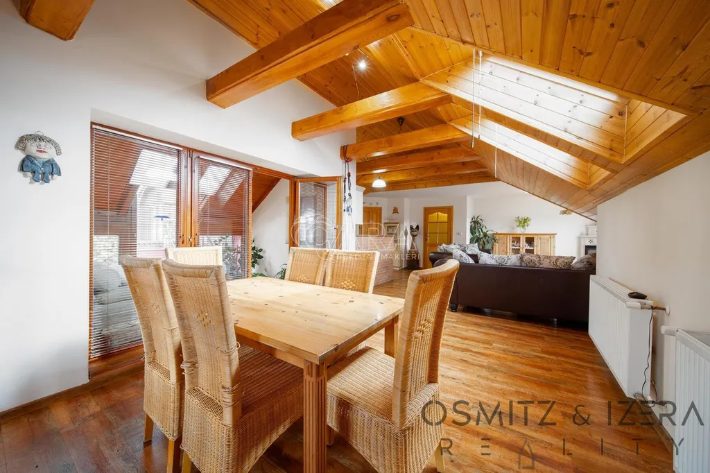 Luxusní zázemí pro majitele: Nadstandardní apartmán 4+kk s krbem, zimní zahradou a terasou. Tento prostor je také možné přebudovat na další apartmány.