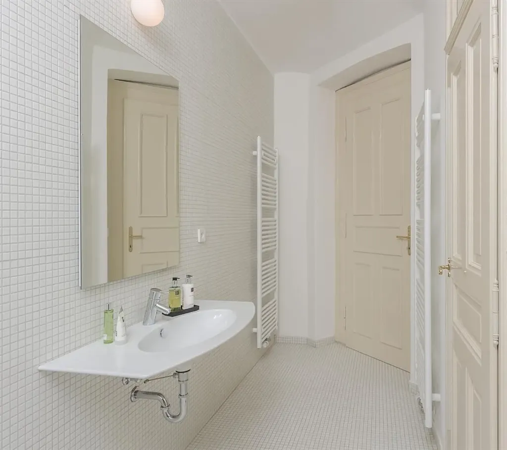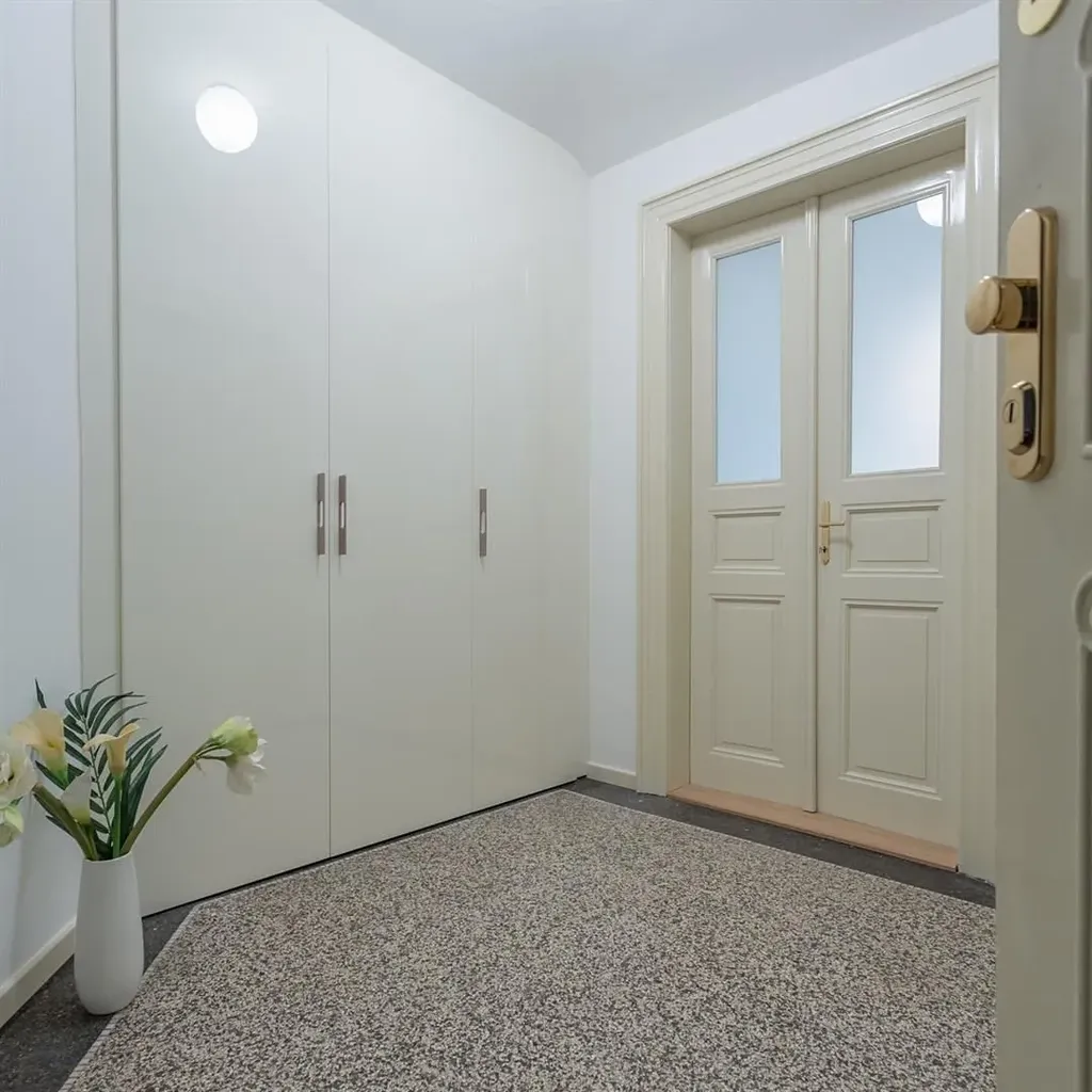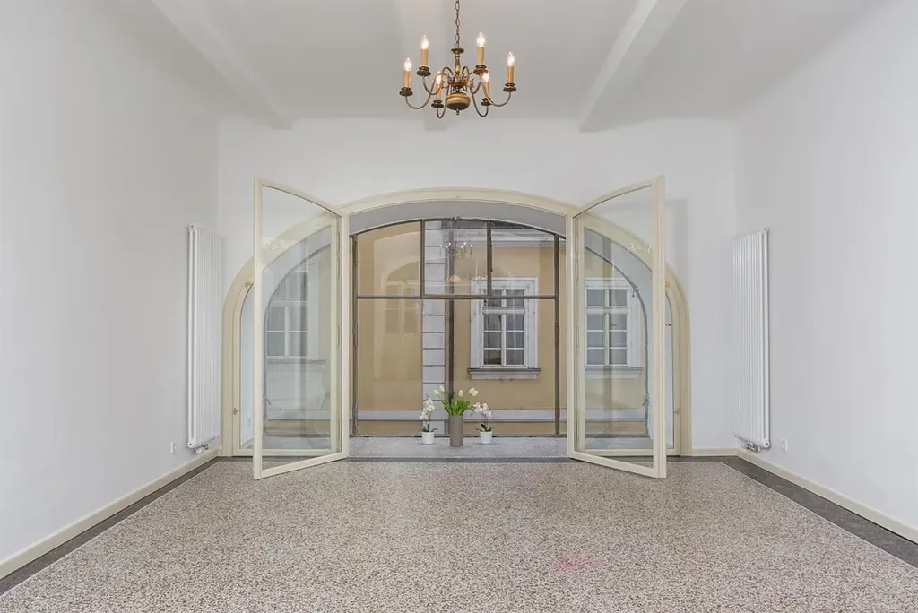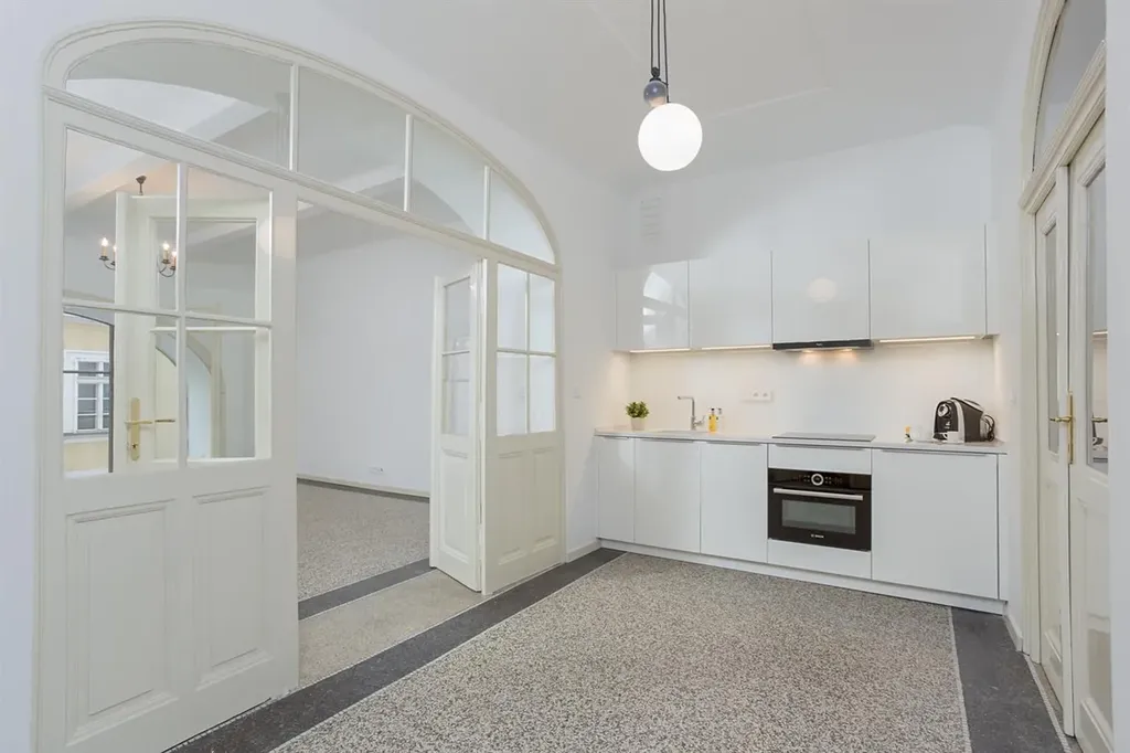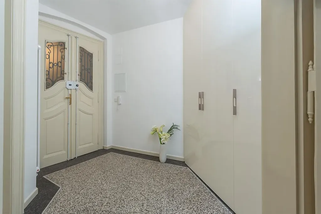 Zrekonstruovaný ateliér 2+1 se zimní zahradou, o celkové ploše 76 m2, se nachází v 1. patře reprezentativní budovy v atraktivní lokalitě Prahy 1, v ulici Martinská. Interiér je částečně zařízený a jeho dispozice sestává ze vstupní haly s vestavenou skříní, navazuje vstup do kuchyňské částí s kuchyňským koutem (trouba, sporák, malá lednice, myčka, digestoř), ze které je dále vstup do 2 dalších místností. Větší místnost se zimní zahradou. Ateliér disponuje koupelnou se sprchovým koutem, a toaletou. Podlahy v prostorách jsou teracové.