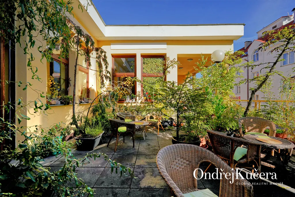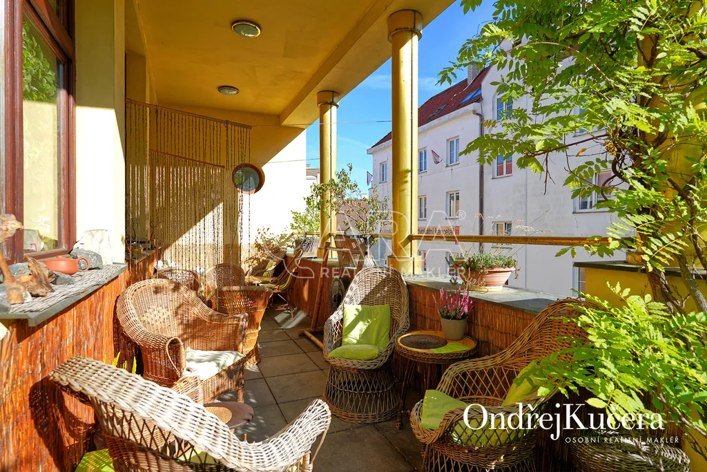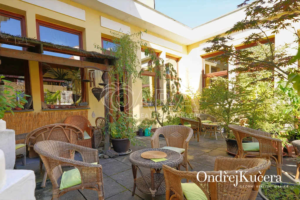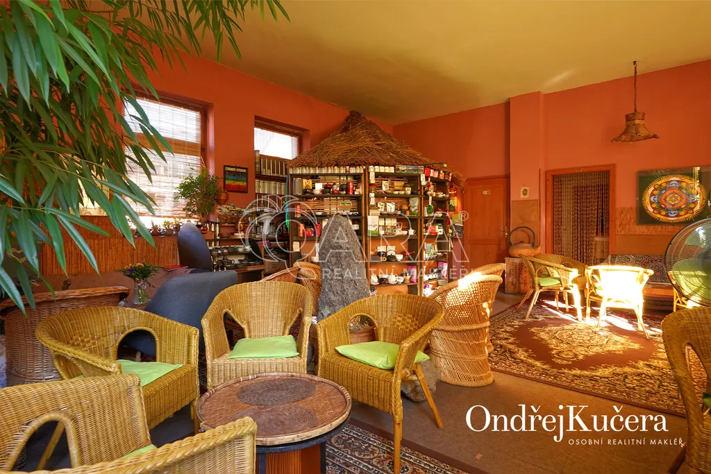 Dům je rozdělen na dvě části. V prvním vchodu se nachází restaurace s potravinami v přízemí. Nad ní je vyhlášená a skvěle hodnocená tradiční čajovna s velkou terasou. V posledním patře je 62 m² byt 2+kk a půda. Ve druhém vchodu je music bar v suterénu, pole gym a 41 m² byt v přízemí. V prvním patře je velký sál s točitým schodištěm do druhého patra s učební a zázemím. Ve druhém patře je i 90 m² byt s dispozicí 3+1. Celkově se jedná přibližně o 1.000 m² s velmi zajímavým uspořádáním.