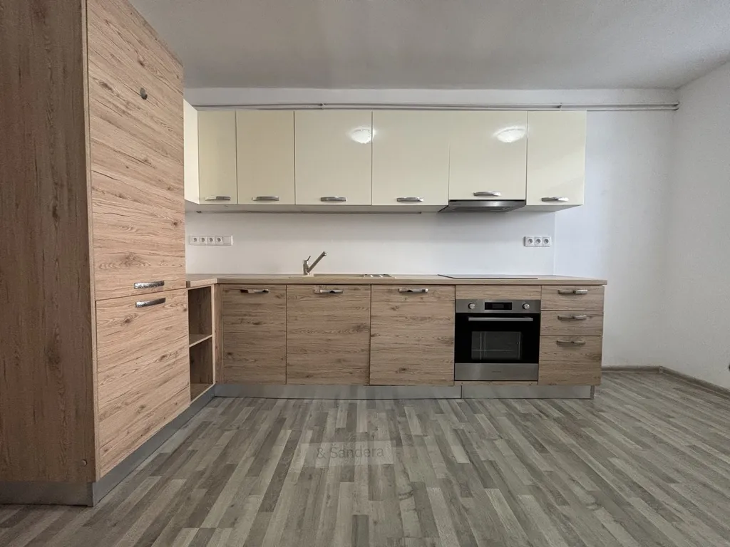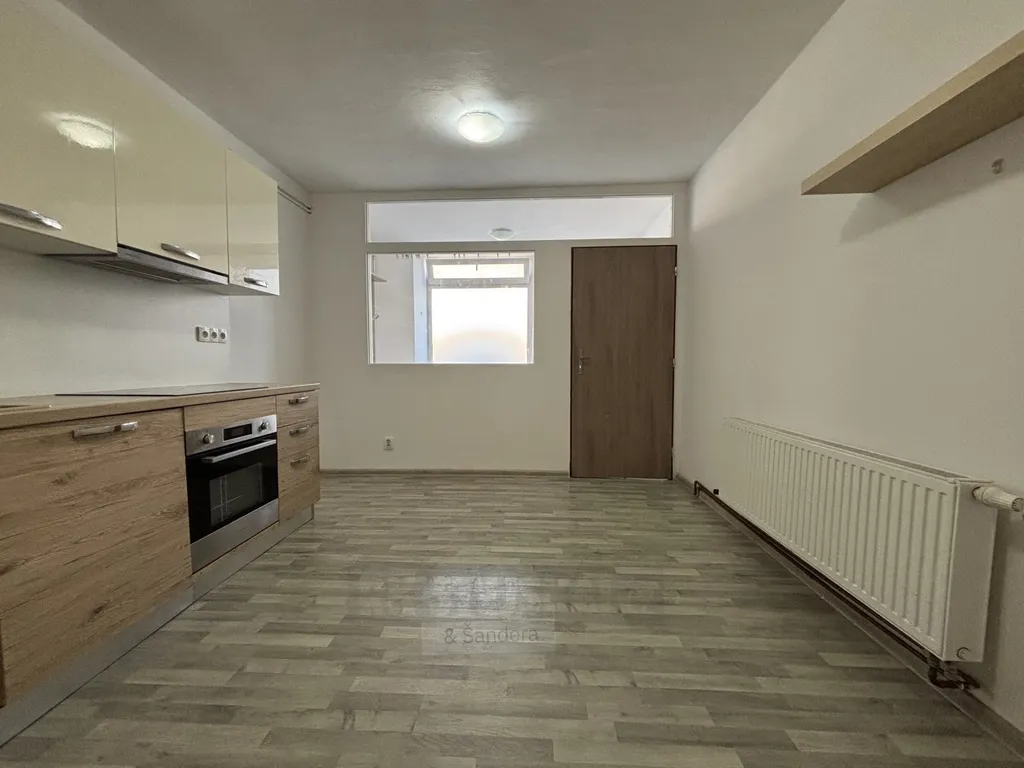 Jednotka má z ulice vlastní vchod, kterým se dostanete do prostorné předsíně, kam lze umístit botník, či jiný nábytek. Na předsíň navazuje kuchyně s nadstandardně velkou kuchyňskou linkou, která je vybavena spotřebiči. V kuchyni je dostatek prostoru pro umístění jídelního koutu. Z kuchyně se dále dostanete do obývacího pokoje/ložnice, který vám poskytne dostatek prostoru pro umístění ložnice a vytvoření obývacích prostor. Koupelna je poté vybavena sprchovým koutem a je zde prostor pro zapojení pračky.