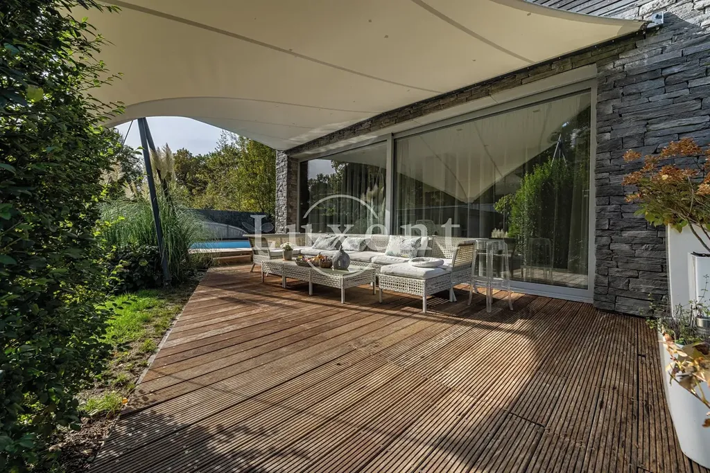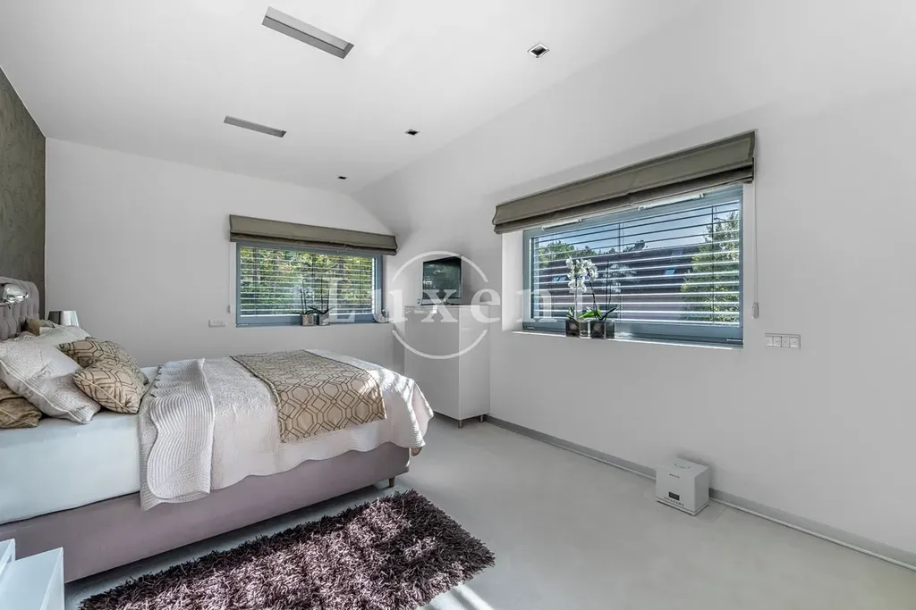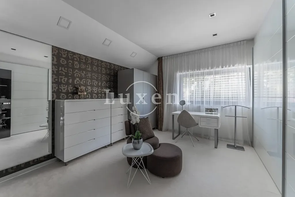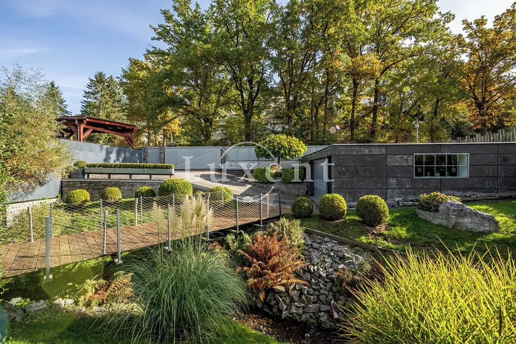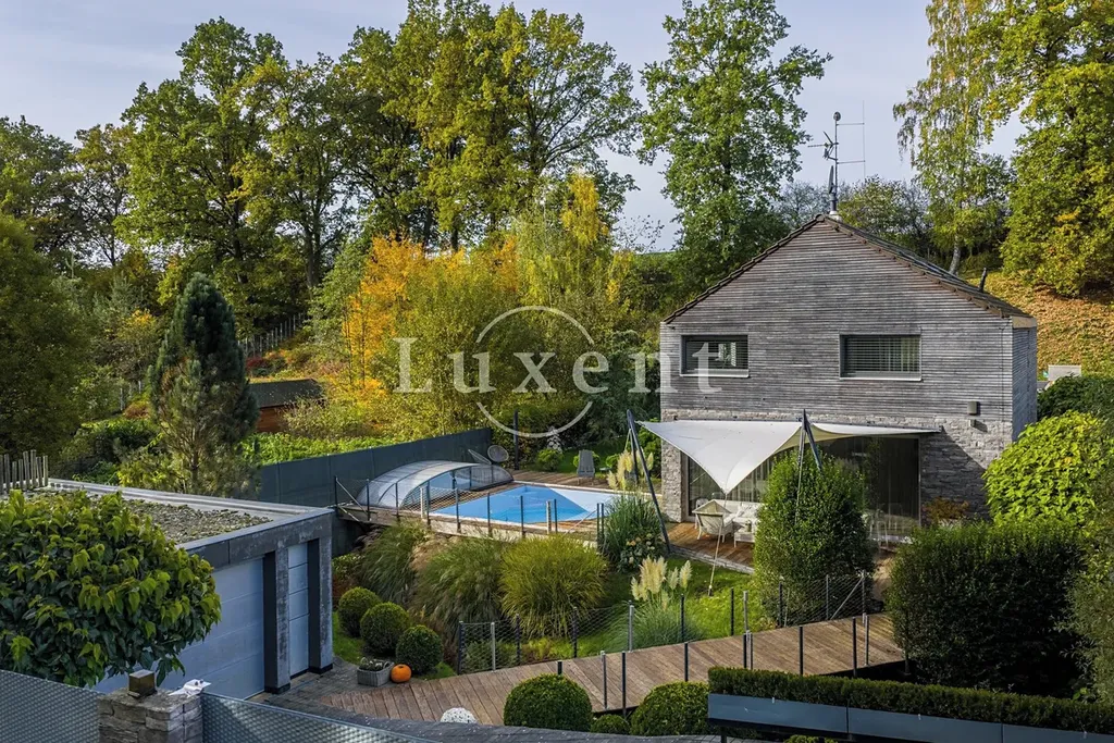 Nabízíme k prodeji dvojpodlažní rodinný dům 5+kk s celkovou užitnou plochou 185 m², který byl postaven v roce 2011. Dům představuje architektonicky nápaditě řešené moderní bydlení, které je citlivě zasazené do malebné okolní přírody Hrusic. Jihovýchodně orientovaná vila důmyslně pracuje se všemi živly: vodu představuje venkovní bazén a potůček na pozemku, rozlehlá zahrada poskytuje zemi, vzduch proudí velkými okny a dveřmi, oheň je zkrocen v krbu.