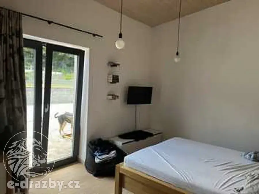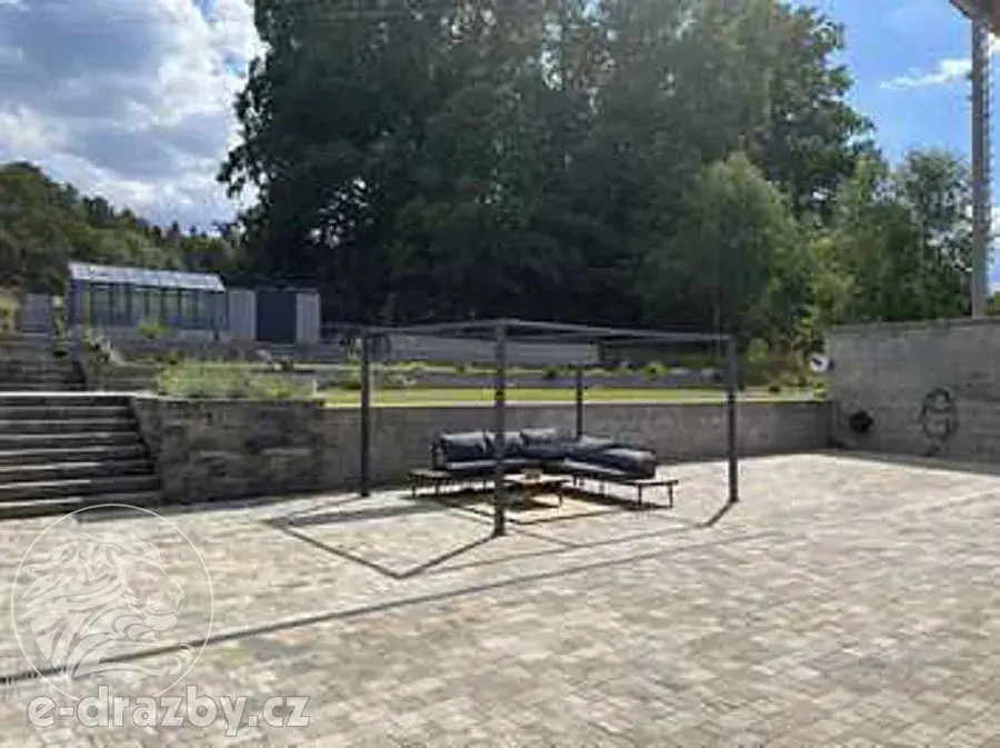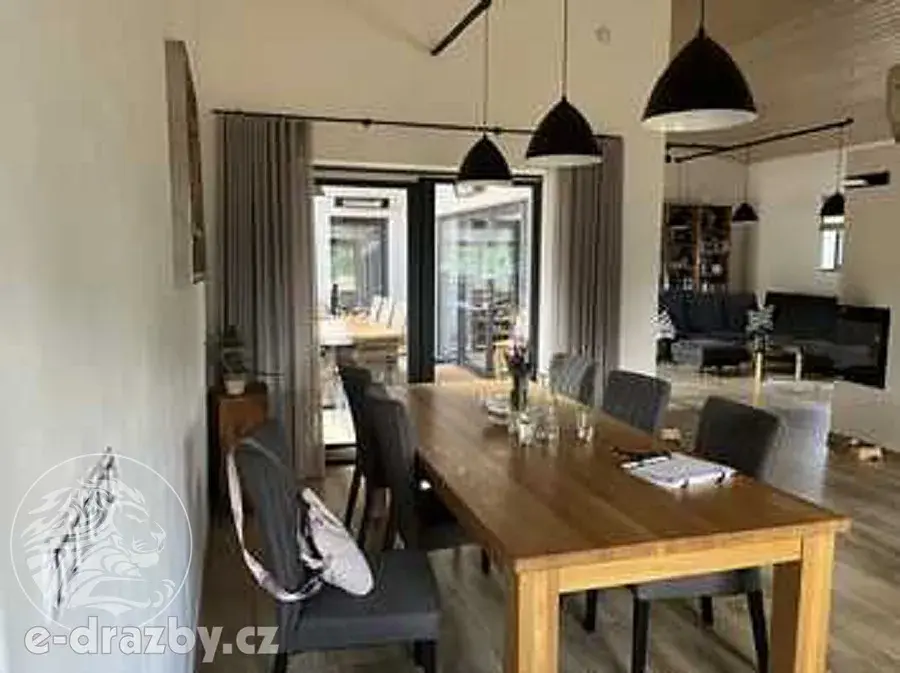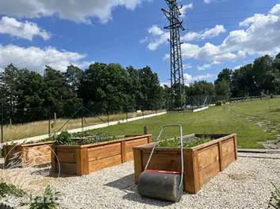 Předmětem dražby je novostavba rodinného domu s dokončením ke dni 14.2.2022 a přilehlé pozemky (zastavěná plocha a nádvoří 305 m2, zahrada 1663 m2 a orná půda 881 m2).