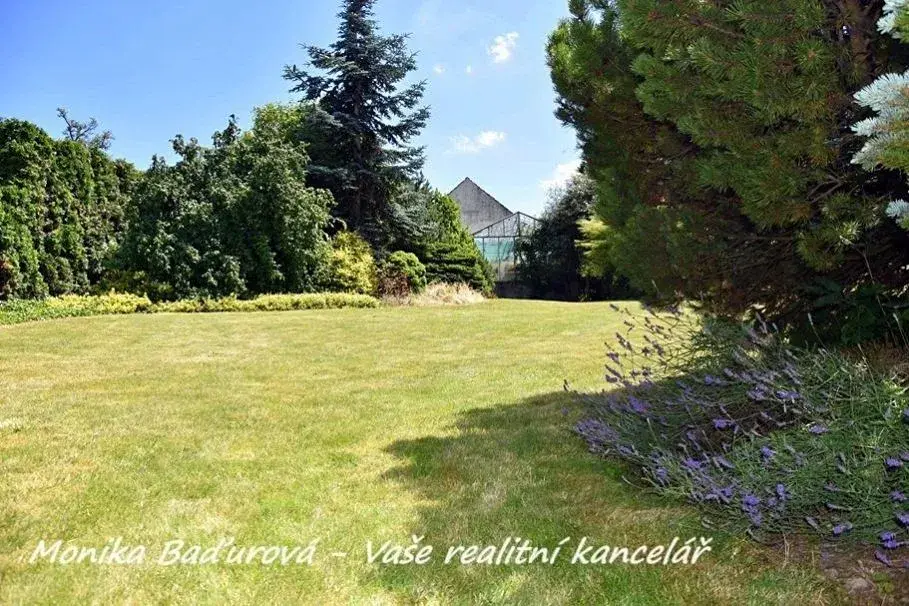 Prvorepubliková vila byla postavena v letech 1935 -1938 a je obklopena rozlehlou a krásně vzrostlou klidovou zahradou, která zajišťuje vlastníkům pocit soukromí. Vzrostlá výsadba dokonale odděluje zahradu i dům od okolních nemovitostí. Na zahradě se na ploše 180 m2 nachází tři velké a funkční skleníky, ideální k pěstování vlastní zeleniny. Voda ze skleníků je jímána do kaskádových jezírek, která na zahradě vytváří romantickou atmosféru. Severní část zahrady přiléhá k cestě a může zde být další stavební místo o šířce 12 m.