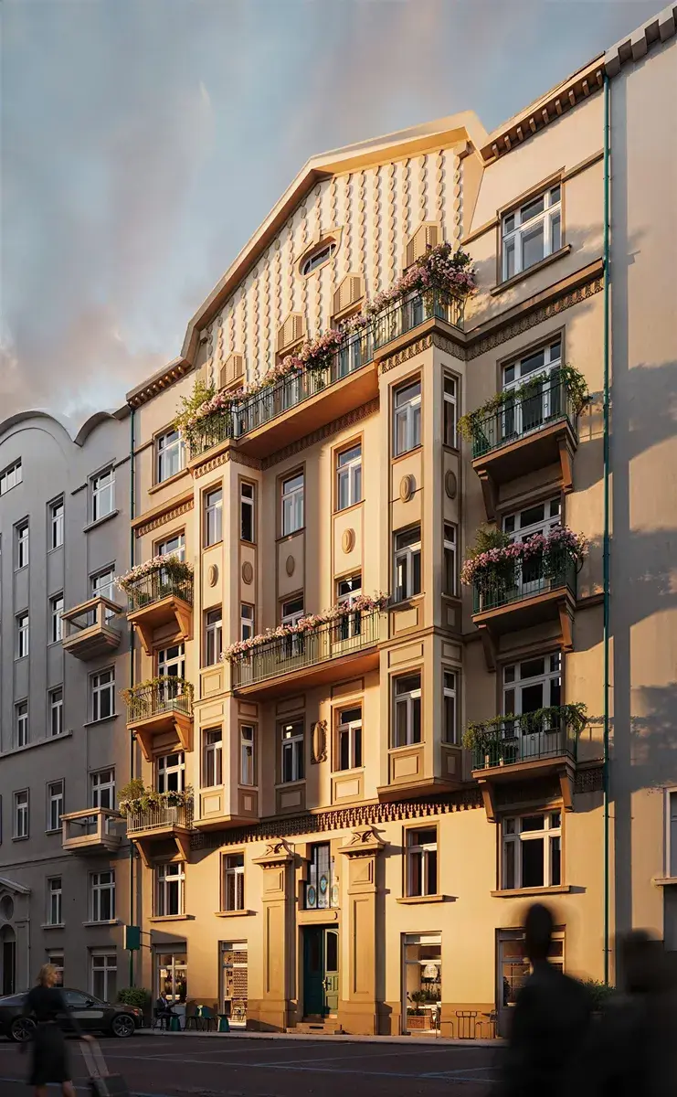 Jednotka je dokončena v provedení fit out s vysokým standardem jako jsou dřevěné parkety, špaletová okna a nadčasově elegantní koupelnou, která podtrhuje její moderní charakter. Elegantní bytový dům po kompletní rekonstrukci společných prostor nabízí materiály jako terazzo, broušené sklo či benátské štuky, které doplňují moderní bezpečnostní dveře a nový prosklený výtah. K dispozici bude také upravený vnitroblok a pro maximální komfort rezidentů i sauna.