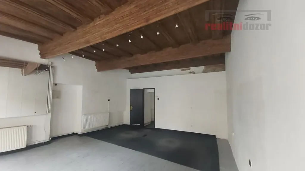 1NP/vstup z ulice - obchodní prostor o výměře 42 m2, zázemí, výlohy do ulice, renesanční trámový strop - volné