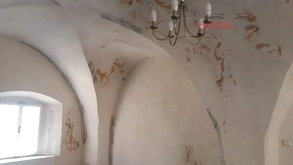 2NP - volný prostor na obchodní činnost/kancelář nebo k bydlení. Nádherné upravené prostory s trámovým stropem, renesančním klenutím a malbou. Výměra celkem 89 m2 = chodba 11 m2 a dvě samostatné místnosti 33 a 36 m2, orientované do ulice i dvora domu. Zázemí tvoří kuchyňka 7 m2 a WC - volné