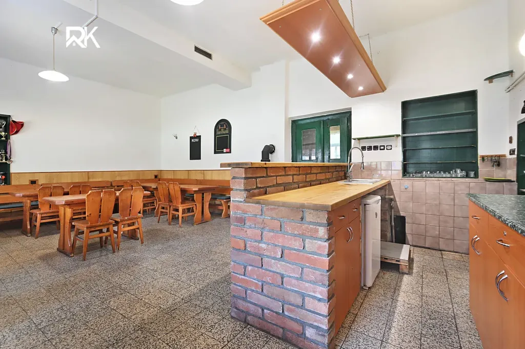 Po rekonstrukci lze objekt přeměnit na rodinný dům s komerčními prostory. Přízemí domu zahrnuje restauraci s barem, taneční sál, kuchyňské a skladovací prostory a další zázemí. Dům je částečně podsklepený a před restaurací je možnost venkovního posezení na zahrádce. Vchod do bytu je oddělen od vstupu do restaurace, což zajišťuje maximální soukromí.
