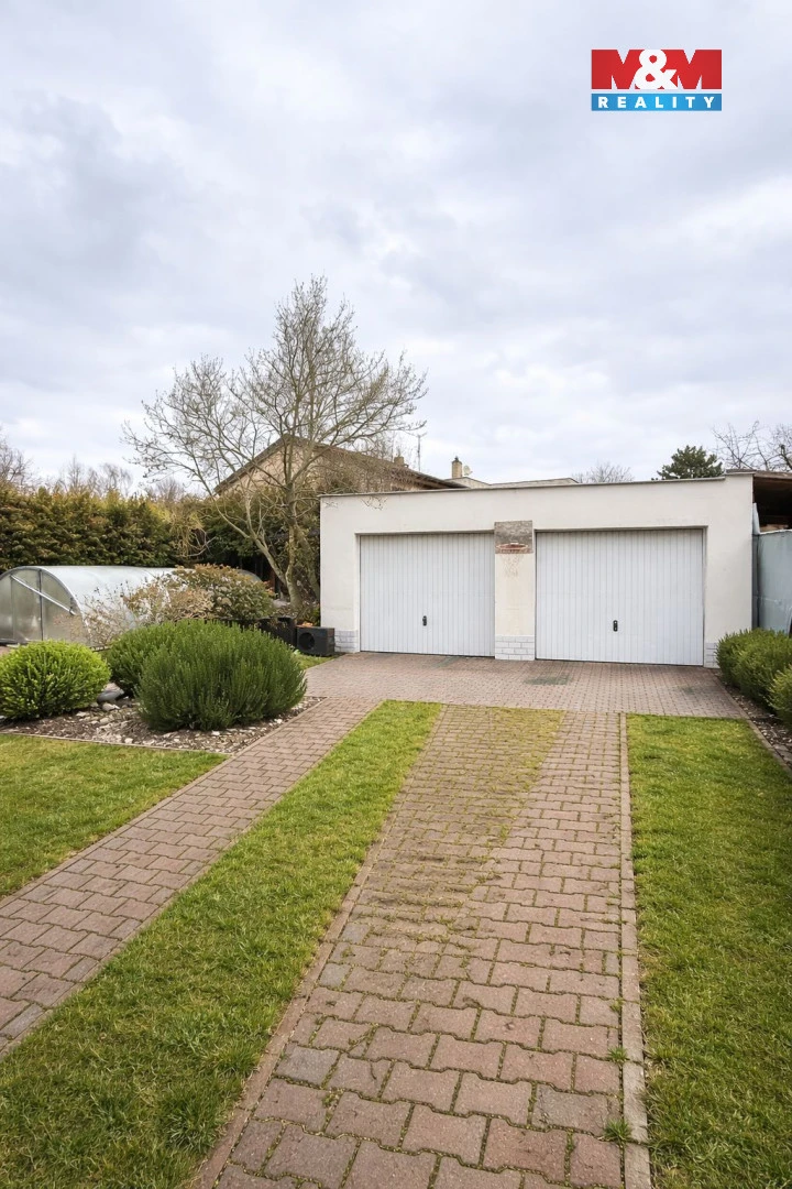 Součástí je udržovaná zahrada s bazénem, altánem a grilovací zónou pro příjemné posezení. Na pozemku se nacházejí dvě garáže a příjezdová komunikace s možností parkování více vozidel.