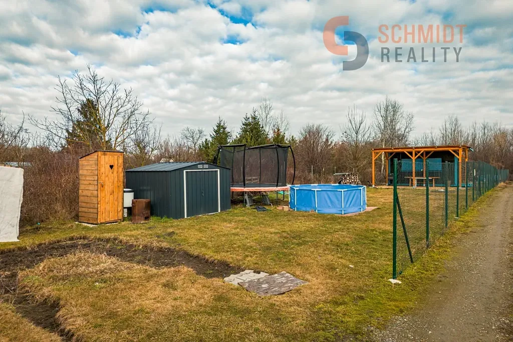 - na pozemku je umístěna pergola a plechový zahradní domek na uskladnění nářadí