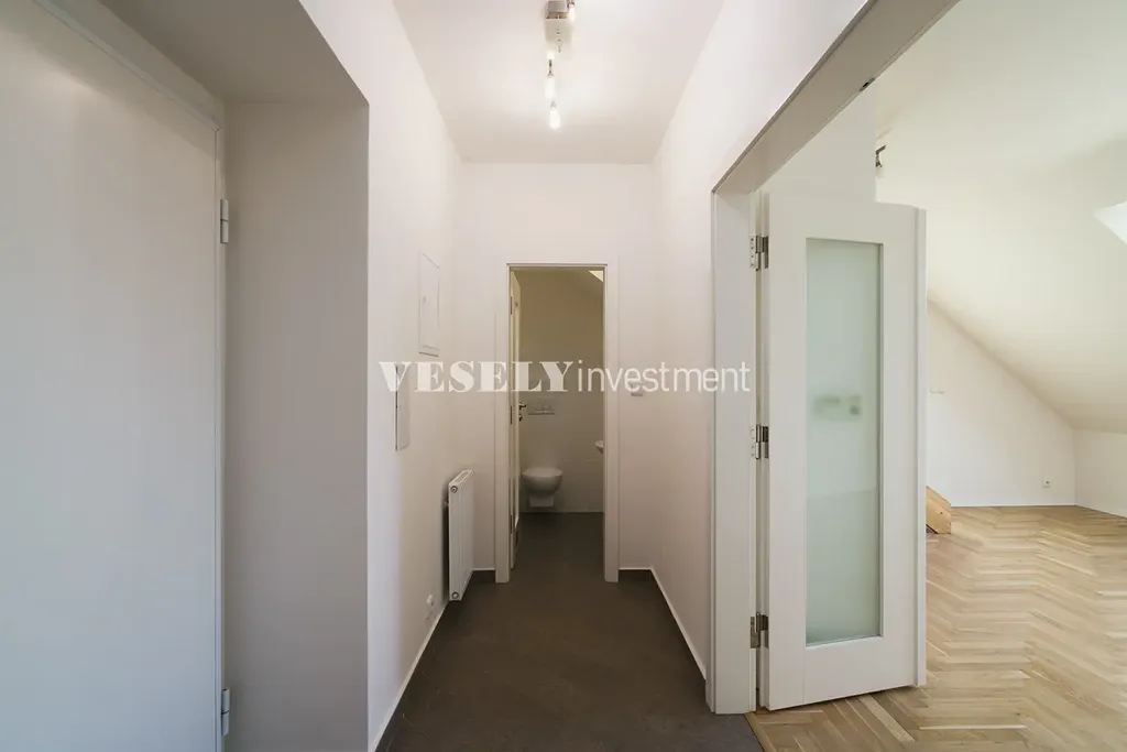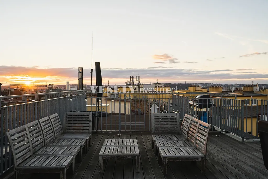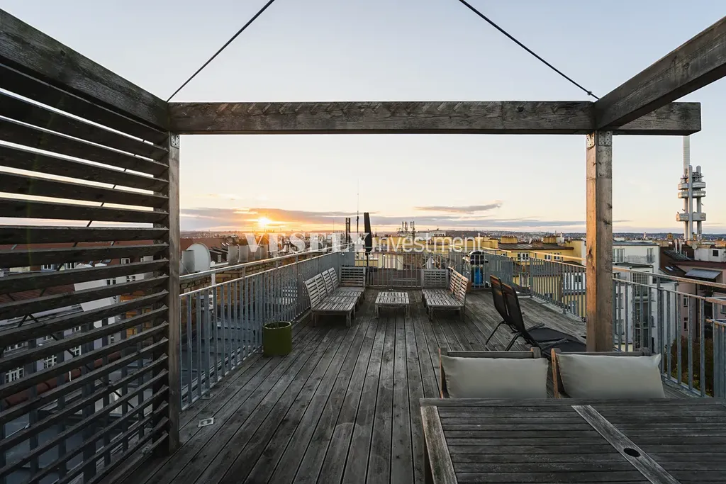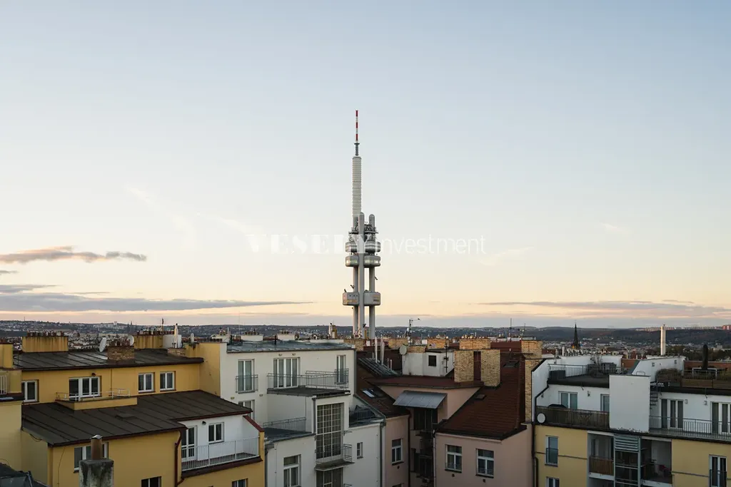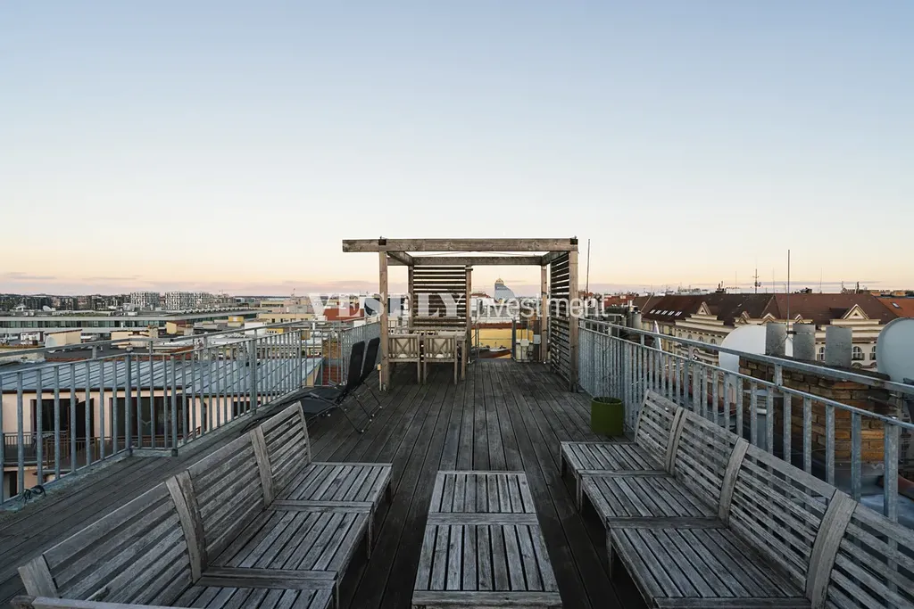 Nabízíme k prodeji unikátní mezonetový byt 4+kk, 139,6 m2 se střešní terasou 51 m2 s krásnými výhledy na celé město, po rekonstrukci, poblíž náměstí Jiřího z Poděbrad. Cihlová bytová nadstavba z roku 2006 v klasickém cihlovém domě s výtahem se nachází v 6.NP, 7.NP. a 8NP.