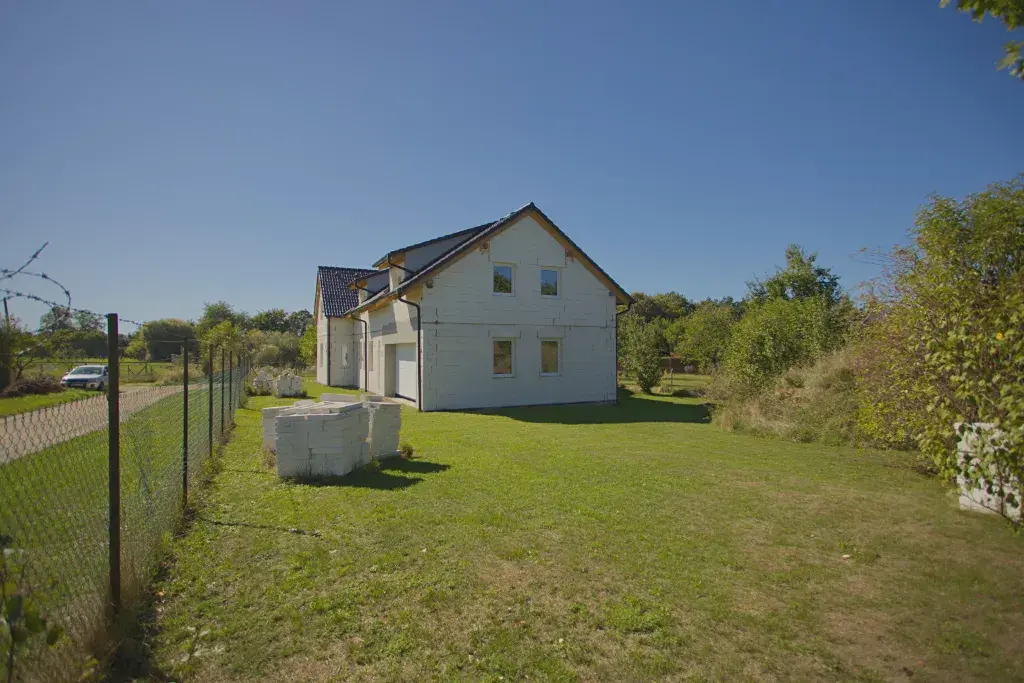 Obvodové zdivo je ytong 45 cm, vnitřní nosné zdivo ytong 25. Stropy jsou z litého betonu s armaturou. Střešní krytina betonová KM Beta černé barvy. Okna a dveře jsou plastová, garážová vrata zásuvná.