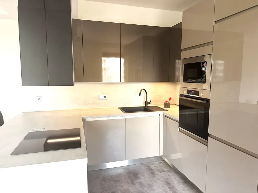 Obývací pokoj je propojený s plně vybavenou kuchyní se spotřebiči (myčka, elektrická trouba s digestoří, mikrovlnná trouba, velká lednice s mrazákem). V místnosti je také jídelní kout a vstup na terasu orientovanou na západ.