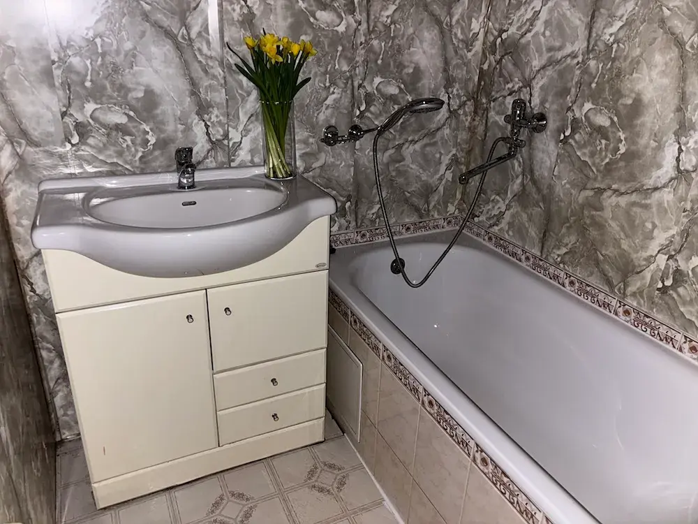 2 samostatné pokoje, kuchyň s balkónem, komora, koupelna s vanou, WC, předsíň.