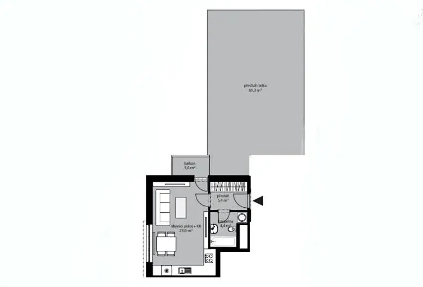 Nabízíme k pronájmu moderní byt v novostavbě s dispozicí 1+kk o rozloze 33 m v atraktivní lokalitě Park Cihelka v Libčicích nad Vltavou. Byt disponuje otevřeným obývacím prostorem propojeným s kuchyní, která je vybavena spotřebiči varná deska, trouba a digestoř. Velká okna zajišťují dostatek přirozeného světla a vytvářejí příjemnou atmosféru v celém bytě. Z obývacího pokoje je možné vyjít na balkón a dále na zahrádku o rozloze 65 m.