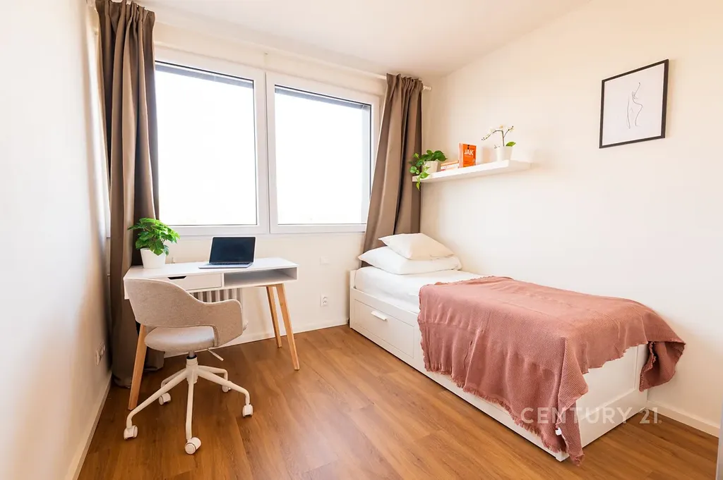 Nabízíme k pronájmu světlý a plně vybavený pokoj s neopakovatelným výhledem přímo na vrch Vítkov. Byt se nachází v 9 patře, v roce 2025 prošel celkovou rekonstrukcí. V bytě jsou celkem 4 neprůchozí pokoje, v tom vašem na vás již čeká veškeré základní vybavení v podobě postele, šatní skříně a pracovního stolu se židlí, takže se můžete v podstatě ihned nastěhovat. Společné prostory zahrnují plně vybavenou kuchyň (sporák, lednice, myčka) a koupelnu se sprchovým koutem, kde je pro maximální komfort k dispozici také pračka a sušička.