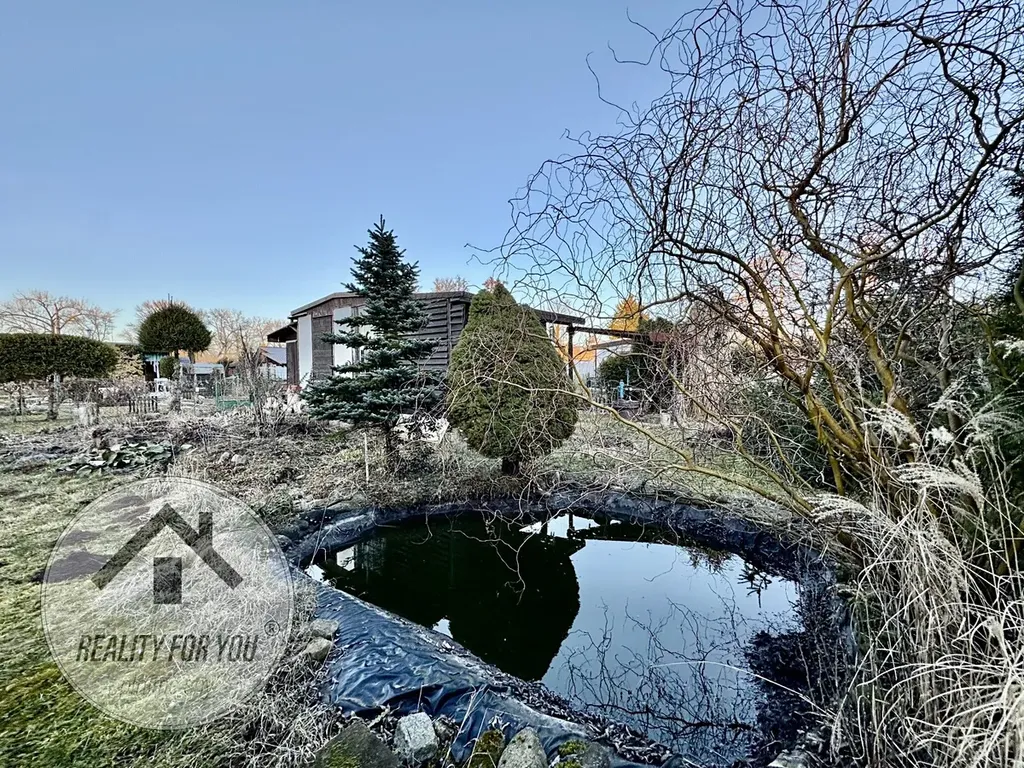 Pozemek má založenou skalku s jehličnany a jezírkem. Voda je řešena vlastní studnou. Na pozemku je stavba suchého WC s dřevníkem. Velkou výhodou je možnost vjezdu vozidla až na pozemek s možností parkování.