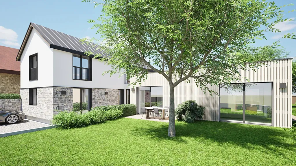 Tento elegantní a prostorný dům 5+kk je dokonalou volbou pro ty, kteří hledají kombinaci moderního designu a maximálního komfortu.