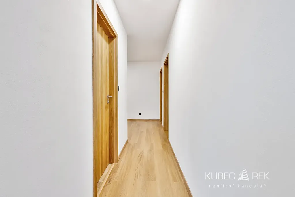 Nově řešená dispozice nabízí dostatek prostoru pro pohodlný rodinný život. Obývací část s kuchyní tvoří přirozené centrum bytu, zatímco samostatné pokoje poskytují dostatek soukromí rodičům i dětem.
