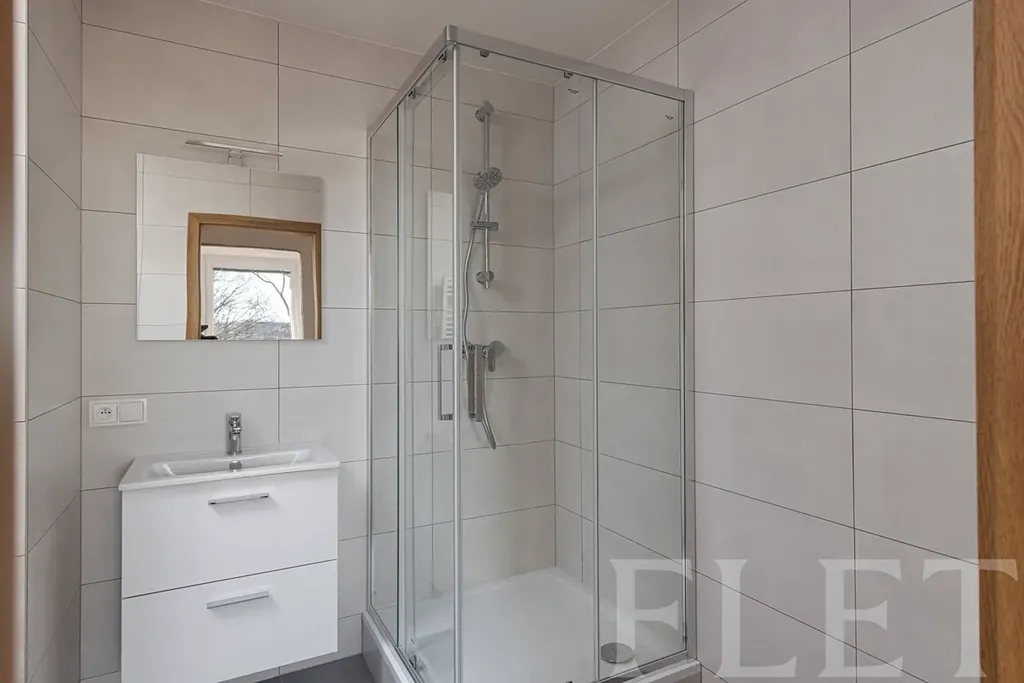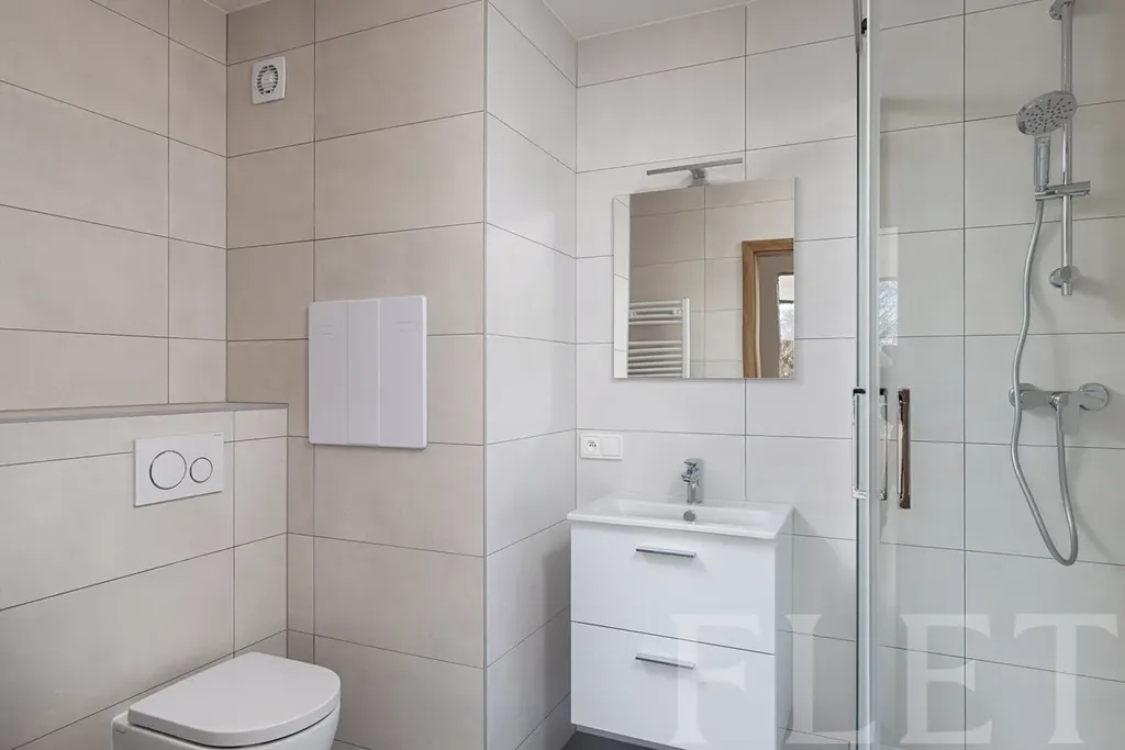 Dominantou bytu je právě otevřený obývací pokoj s kuchyní, která je vybavena všemi potřebnými spotřebiči – lednicí s mrazákem, myčkou, troubou, varnou deskou i digestoří. Dvě samostatné ložnice poskytují dostatek soukromí a flexibility, ať už hledáte bydlení pro pár, rodinu nebo potřebujete pracovnu. Velkým benefitem je oddělená technická místnost s pračkou, díky které zůstává obytná část nerušená a přehledná. V koupelně najdete sprchový kout a toaletu. Byt se pronajímá nezařízený, což vám dává možnost vytvořit si domov přesně podle svých představ.