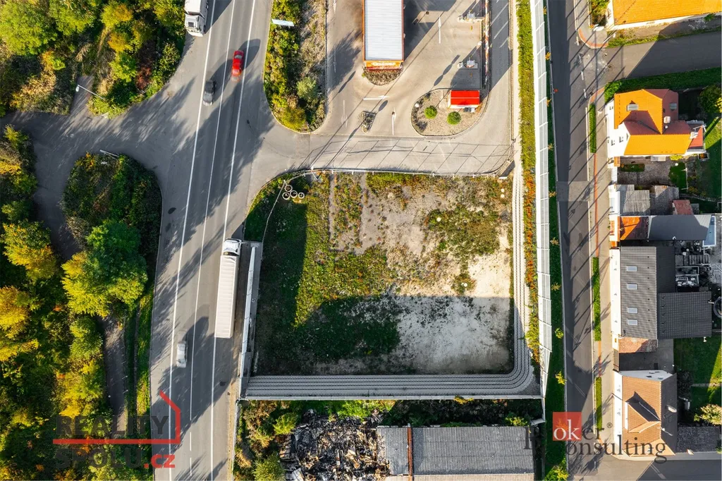 Díky poloze na frekventované silnici je výborně viditelný, přesto částečně krytý hlukovou stěnou. V sousedství funguje mycí centrum automobilů, které zajišťuje stabilní pohyb zákazníků. Přístup na pozemek je pohodlný – přímo z hlavní komunikace pro automobily, nebo z ulice Cukrovarská pro pěší.