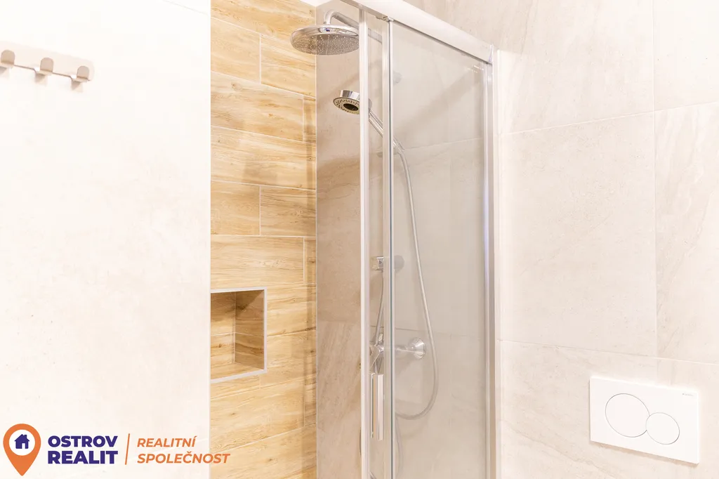 Skutečným komfortem je prostorná, designově řešená koupelna, která nabízí jak rohovou vanu pro chvíle relaxace, tak i praktický sprchový kout. A je zde i místo na pračku a sušičku. Součástí bytu je moderní domovní videotelefon s možností ovládání přes mobilní telefon. Díky tomu můžete pohodlně otevřít vstupní dveře kurýrovi nebo návštěvě přímo ze svého telefonu, což výrazně zvyšuje komfort každodenního bydlení. Byt je dále vybaven rekuperační jednotkou, kterou lze rovněž ovládat přes mobilní aplikaci. Máte tak plnou kontrolu nad větráním a kvalitou vzduchu jednoduše a přehledně. Moderní technologie zde nejsou jen doplňkem, ale přirozenou součástí pohodlného a současného bydlení.