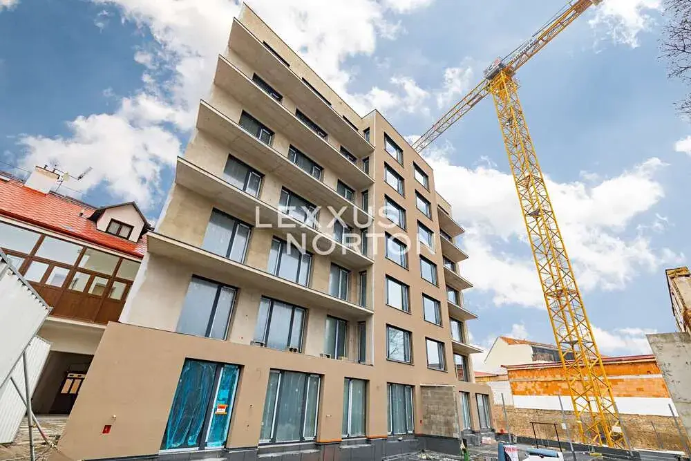 Dokončení bytu ve vysokém standardu zahrnuje vinylové podlahy v dekoru dubu, bílé interiérové dveře, velkoformátové obklady koupelen v šedé barvě a vybavení renomovaných značek SAT a GROHE. Izolační okna s trojskly zajišťují dokonalou tepelnou i zvukovou izolaci, zatímco řízené větrání s rekuperací tepla a příprava pro elektrické venkovní žaluzie přispívají ke komfortu bydlení. Bezpečnostní vstupní dveře třídy 3 poskytují maximální bezpečí. K bytu náleží sklepní kóje o velikosti 2,7 m2 v podzemním podlaží.