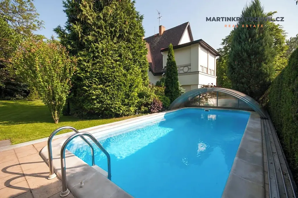 Exkluzivně nabízím k prodeji prostornou reprezentativní vilu s dvojgaráží, venkovním bazénem a zahradou v prestižní lokalitě Prahy 4 – Braník.
