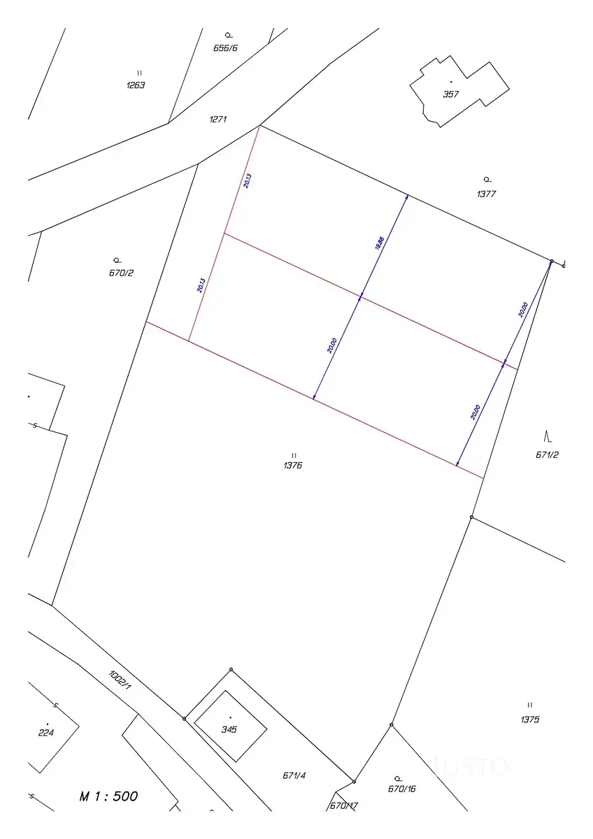 Aktuálně má pozemek výměru 6 162 m², přičemž se nabízí možnost odkupu části o výměře cca od 1 500 m² do 3 000 m² (konkrétní velikost bude stanovena po vzájemné dohodě s prodávajícím a následném vyhotovení geometrického plánu). Předběžný návrh dělení najdete ve fotogalerii inzerátu.