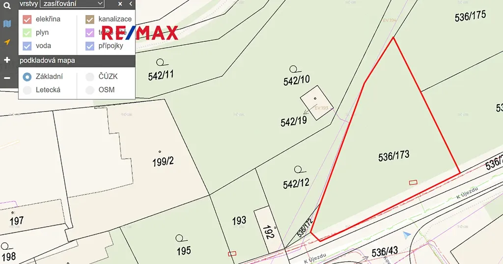 Pozemek tvoří dvě parcely (680 m² + 15 m²) a nachází se v čistě obytné zóně (OB-B) dle územního plánu hl. m. Prahy. Na základě předběžné informace od stavebního úřadu je zde možné postavit samostatně stojící rodinný dům. Přístup zajišťuje zpevněná cesta s právem vjezdu. Veškeré inženýrské sítě včetně telekomunikačních jsou k dispozici.