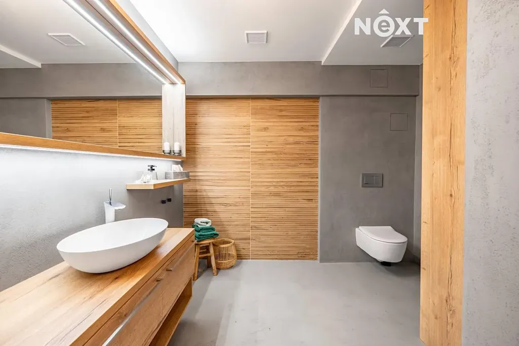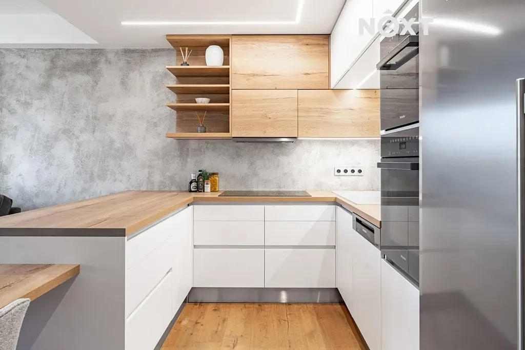 Kvalitní provedení bytu zahrnuje dřevěné podlahy, designovou stěrku v koupelně, podlahové vytápění s vlastním okruhem v každém pokoji i koupelně, samostatný kalorimetr, přípravu na venkovní žaluzie a moderní kuchyňskou linku se spotřebiči – indukční varná deska, konvektomat (kombinovaná trouba), vestavěné spotřebiče.