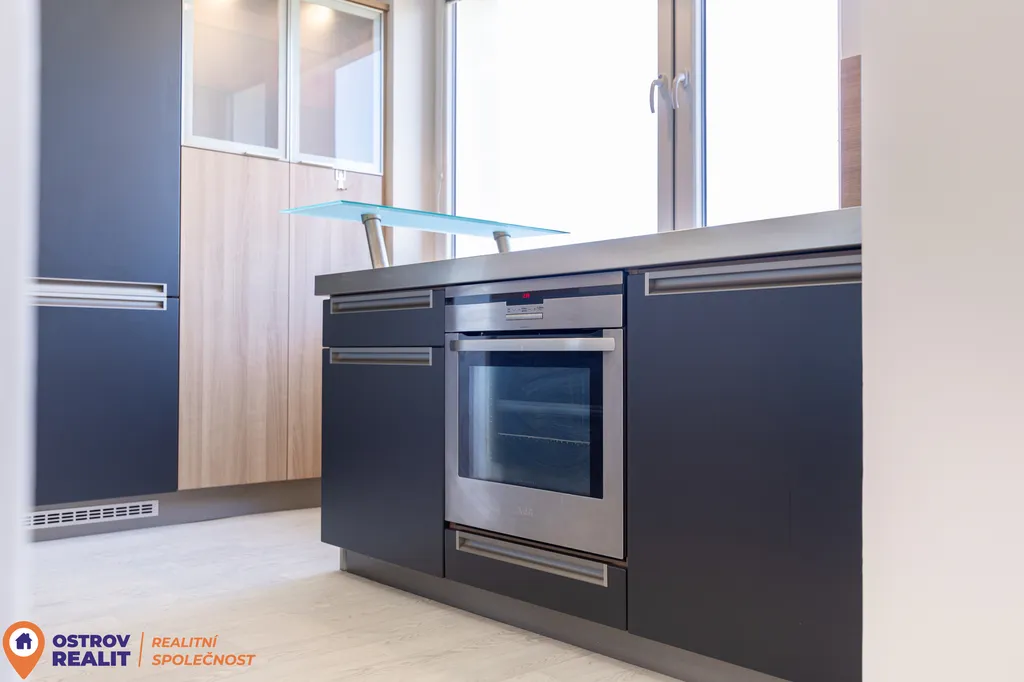 Srdcem bytu je moderně řešená kuchyňská linka s dostatkem pracovní plochy i úložného prostoru – ideální pro společné vaření i rodinné večeře. Praktická komora přímo v bytě navíc elegantně řeší úložné prostory.