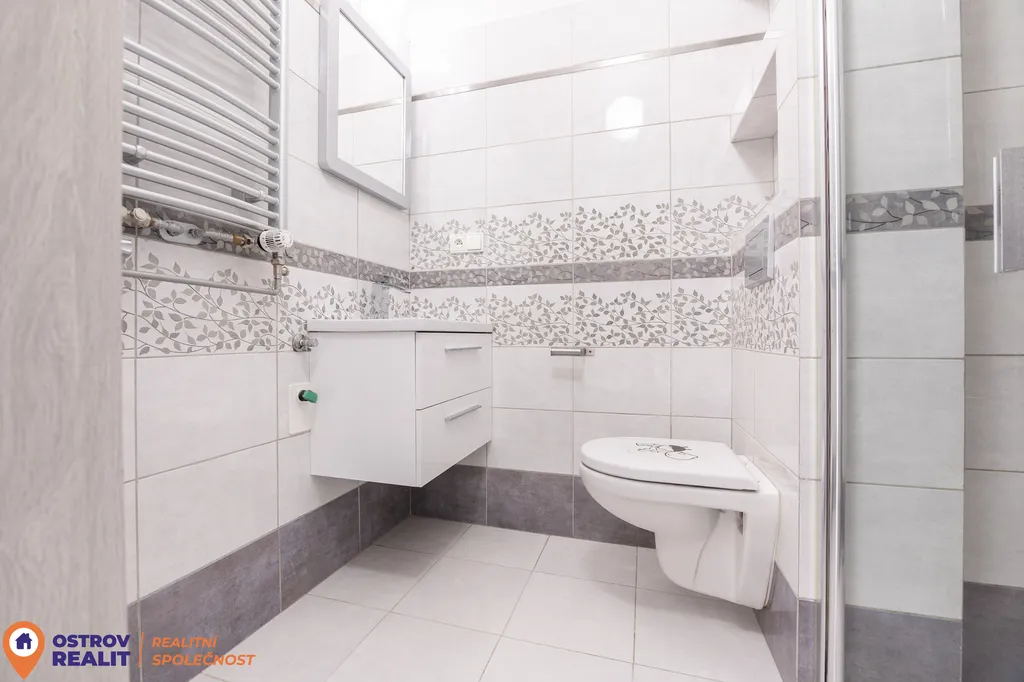 Koupelna je vybavena sprchovým koutem a působí čistým, svěžím dojmem. Celý byt je po rekonstrukci, takže vás nečekají žádné další investice – stačí se nastěhovat a bydlet.
