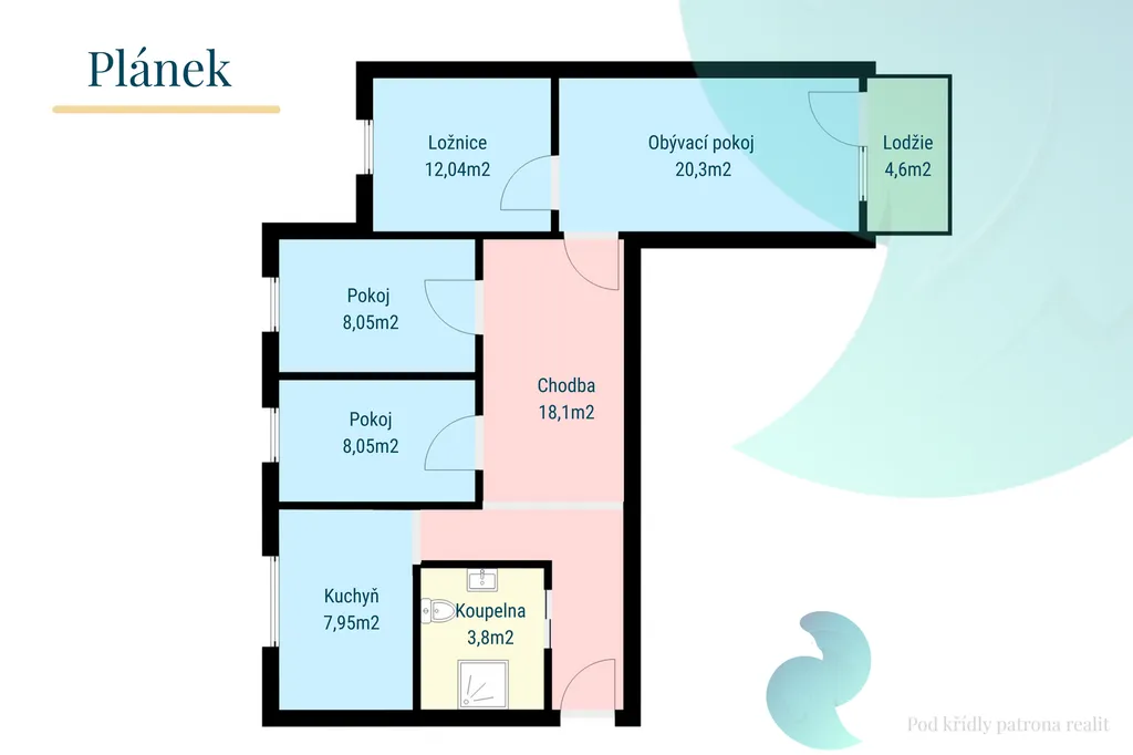 • Lodžie o velikosti 4,6 m², která nabízí příjemný prostor pro relaxaci.
