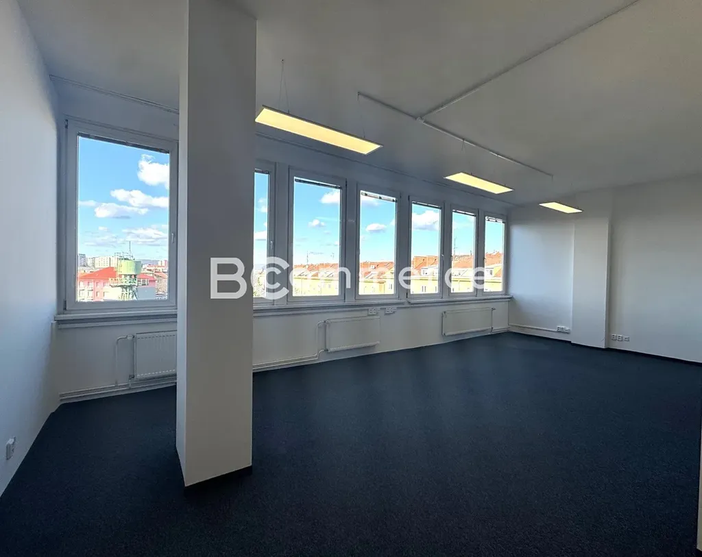 Nabízíme k pronájmu světlou kancelář o velikosti 61m2, jejíž součástí jsou dvě menší oddělené jednací místnosti. Kancelář je umístěna v administrativní budově na frekventovaném místě v Brně Žabovřeskách v blízkosti centra města s dobrou dopravní obslužností. Kancelář je vhodná pro obchodní, poradenské firmy, které k jednání s klienty potřebují soukromí. Pronajímatel preferuje plátce DPH.